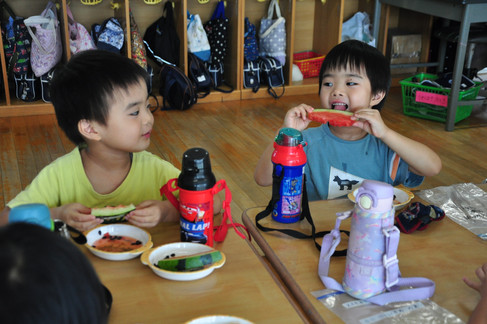 スイカはとても甘くて美味しく、何度もおかわりする子がたくさんいました🎵