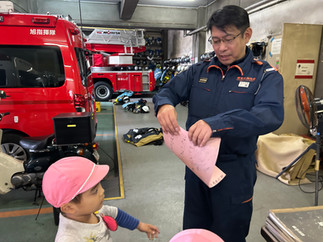 たくさん貴重な経験をさせていただき、最後に消防士の方々へお礼をして園へ戻りました。