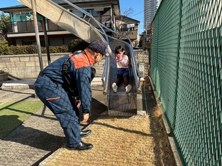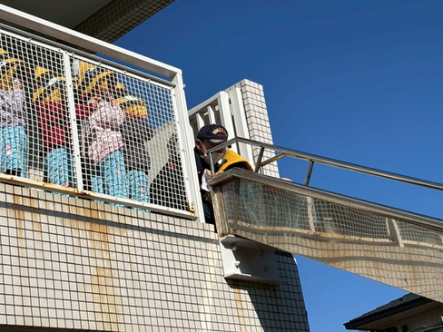 あか組、もも組は非常用すべり台を使って、前回よりもスムーズにすべり降りていました。