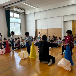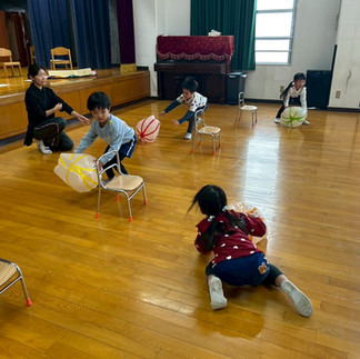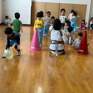 おうたを歌ったあとはハロウィンの季節にちなみ、かぼちゃボールを使ってリレーを行いました!