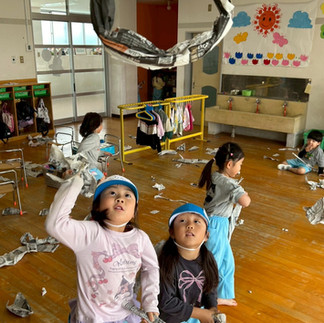 お約束を確認してから早速新聞紙を手に取り、遊びをスタート!